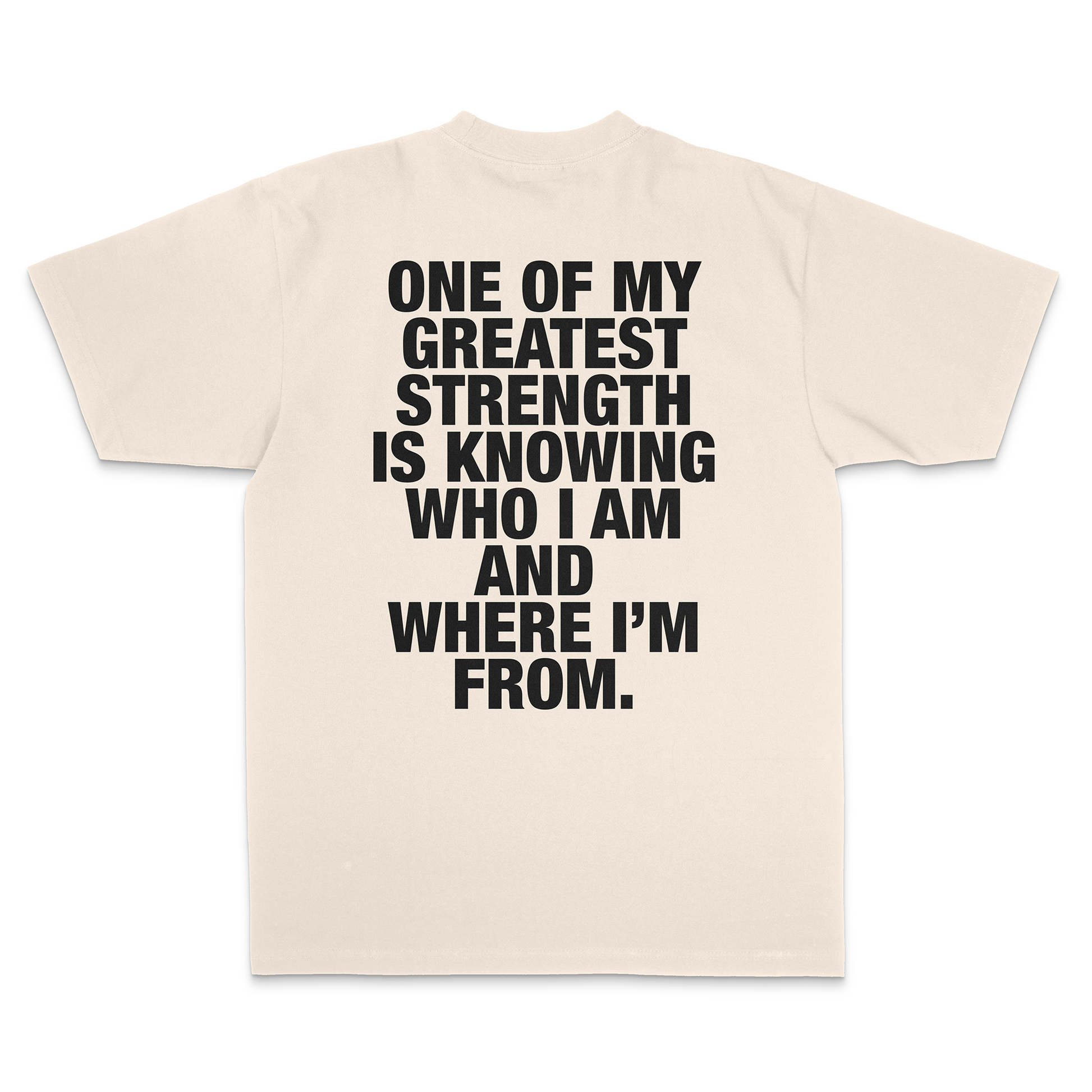 "My greatest strengths is knowing who I am and where I'm from." Wear this tee proudly.